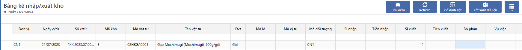 * Mã vật tư: Danh sách những vật tư được kiểm kê trong kho