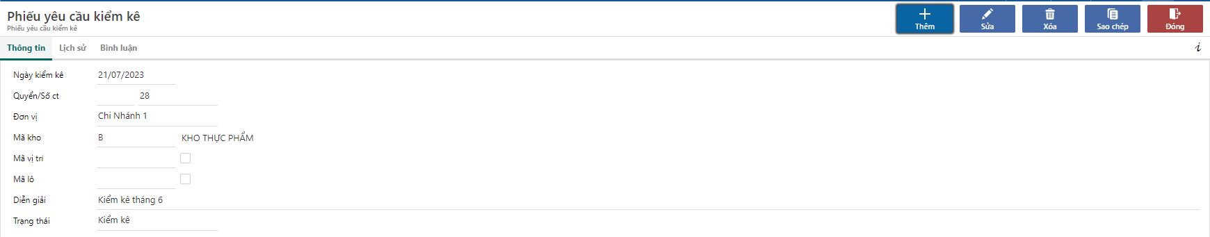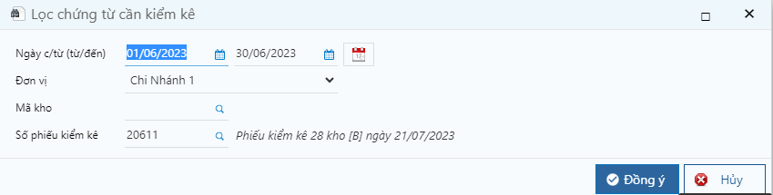 * Mã kho: Kho được kiểm kê