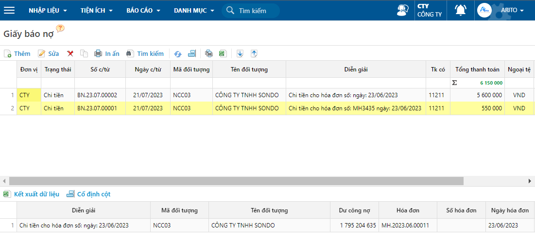 * Nếu có tick nút Xem chứng từ đã tạo thì sau khi nhấn Đồng ý sẽ hiện màn hình các chứng từ chi theo hóa đơn.&#x20;